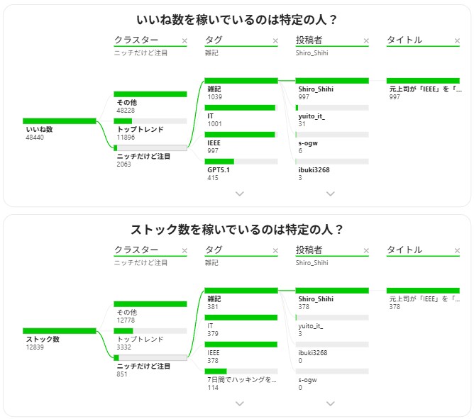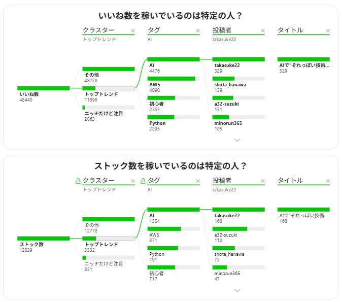 Power BIを活用:分解ツリーでいいねやストックを稼いでいる人に偏りがあるかを見てみる
